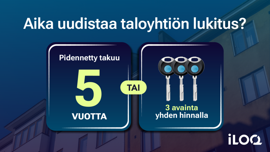 iLOQ-lukitusjärjestelmän avulla varmistat, että kiinteistön turvallisuus pysyy aina korkealla tasolla. Järjestelmän hallinnointi on helppoa ja ylläpito edullista.